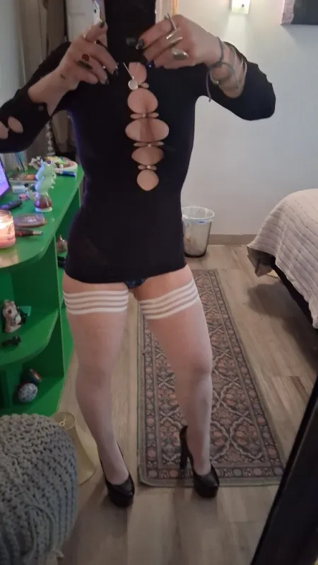 I slipped on sexy lingerie had to wear k i x i e s AKA thigh highs or this look is incomplete don't let me forget I threw on brand new platform patent high heel sexy dripper shoes leave out the toys I use them before the knock on my door for I took one look at how sexy this b**** is and you know I had to I had to do it play with this clit not a big fat one but a perfect one a pretty one I do this all from me but doesn't hurt to look this good for you to see start with a look maybe a kiss on the cheek didn't take long we were wrapped around each other's fun could be this is the last time so we'll let go of our inhibitions and please one another as long as I can just remember I don't even know your name and it's okay but it's so much better strangers will never linger but desire remains I'm alive I trigger memory she will never you know who I am where are my regular men who love me call me miss you